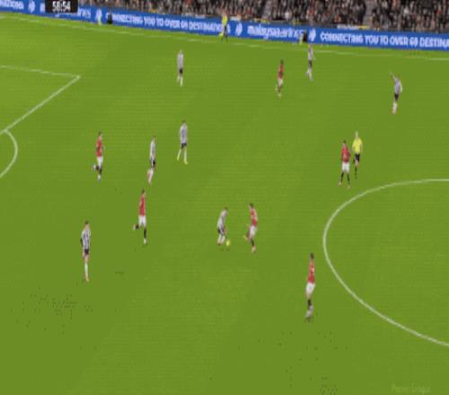 第36分钟,曼联在前场连续一脚传球,库尼亚的射门没能命中目标。