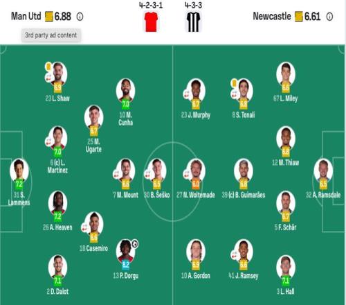 纽卡首发:32-拉姆斯代尔、3-刘易斯·霍尔、12-佳夫、5-沙尔、67-麦利、8-托纳利(76’28-威洛克)、41-雅各布·拉姆塞(68’11-巴恩斯)、39-吉马良斯、10-戈登、23-雅各布·墨菲(68’7-乔林顿)、27-沃尔特马德(68’9-维萨)。