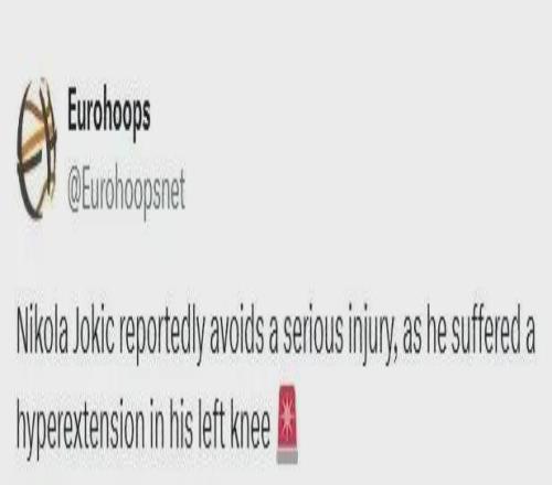 塞尔维亚媒体Meridian Sport从掘金内部人士处非正式获悉,约基奇的伤势属于膝盖过度伸展,并未造成严重损伤。