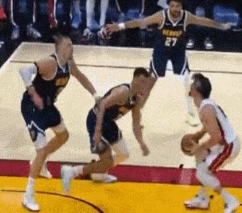 言归正传,最近结束的掘金123-147客场不敌热火比赛,临近次节结束前一次防守回合约基奇被队友误伤,退赛前打了约19分钟贡献21分5板8助。